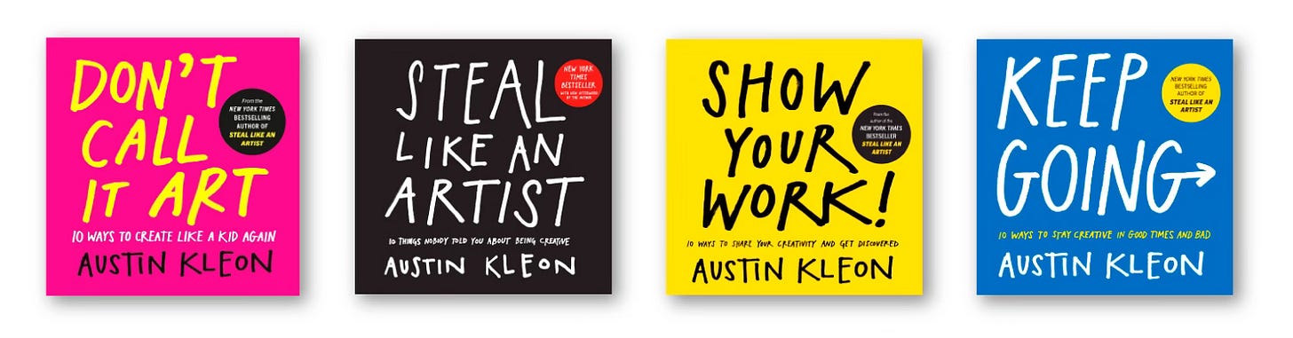 I’m Austin Kleon, the New York Times bestselling author of Steal Like an Artist and other books about creativity. My books have sold over two million copies and have been translated into over 30 languages.