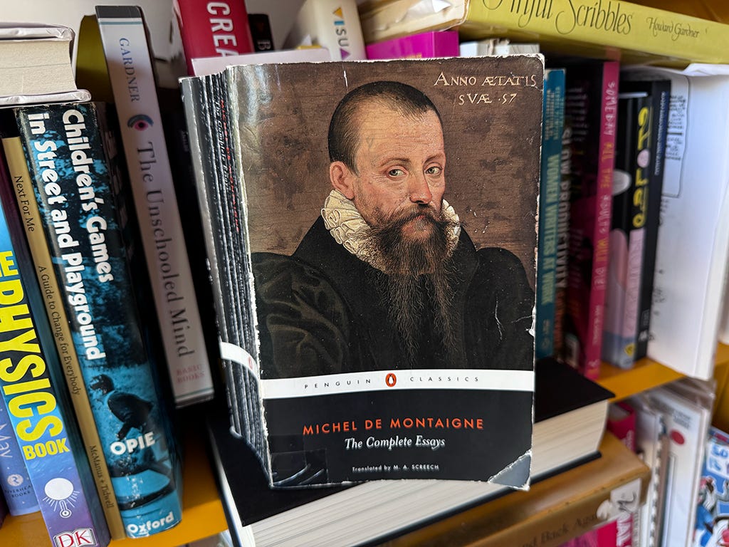 History would like a word. I don’t recommend books as correctives (as G.C. Lichtenberg wrote, “A book is a mirror; if an ass peers into it, you can’t expect an apostle to look out”) but for you, my dearest readers, I’d like to recommend this 431-year-old book of essays written by Michel de Montaigne.