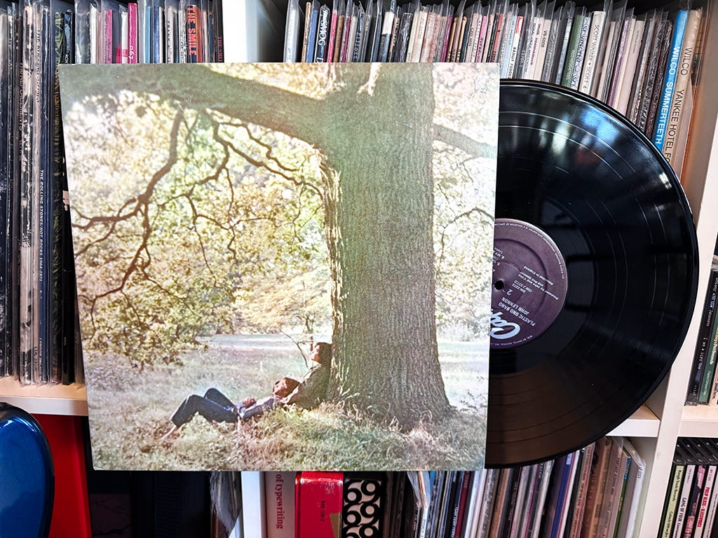 The artwork is a key feature of this record. I was a teenager when I got the CD of Plastic Ono Band. The front cover is clearly labeled with Lennon’s name and the title, and the back cover is a plain green background with the track listing. I probably listened to the album for a whole decade before I got my hands on the LP, which not only doesn’t have Lennon’s name or the title on the front cover, it features nothing on the back cover but a picture of Lennon as a little boy: