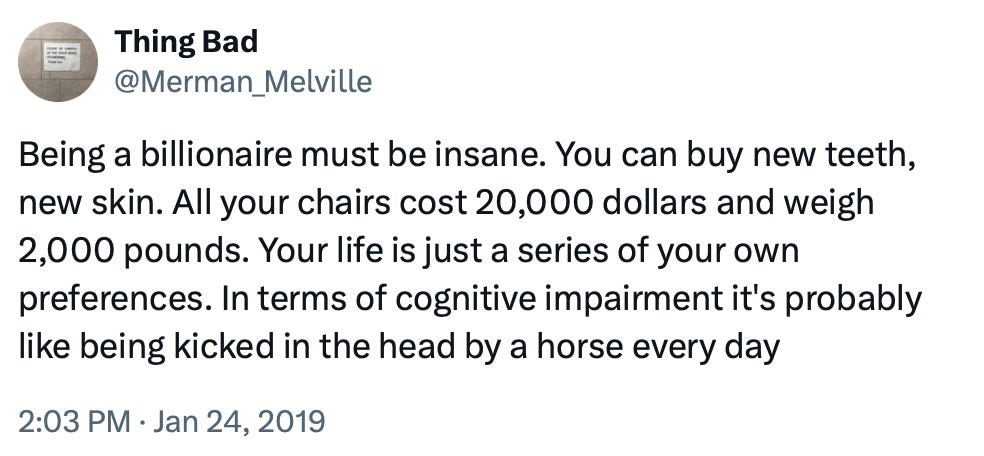 Humans say all kinds of stupid things every minute of the day, but people hold microphones up to the lips of billionaires and we have to suffer their amplified stupidity.