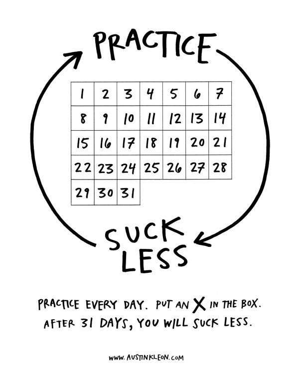 However, if you have a resolution, here’s a 31-day “Practice and Suck Less” challenge to help you stick with it: