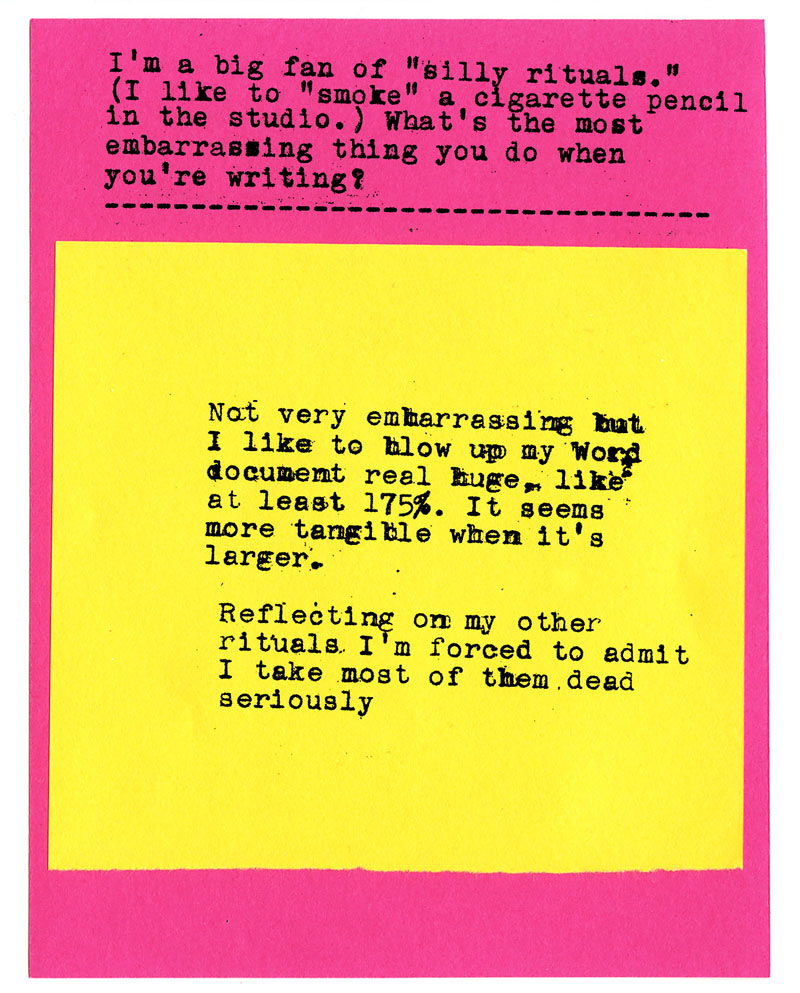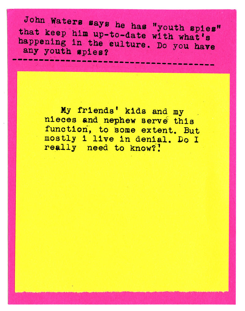 I liked how similar this answer was to Mary Ruefle’s — as much as I try to be a “curious elder,” the “it’s none of my business what the youth are up to!” mode is becoming more and more appealing to me…