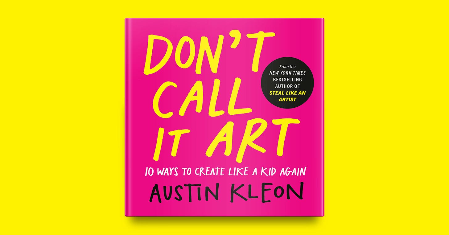 I was delighted (and a little overwhelmed, honestly!) by the response to last Friday’s announcement of my next book, Don’t Call It Art. Many people asked if they could order signed and personalized copies — the answer is yes! You can pre-order from Book People here in Austin, Texas and I’ll not only sign and personalize as many as you want, I’ll draw in them, too, like I do in all my other books: