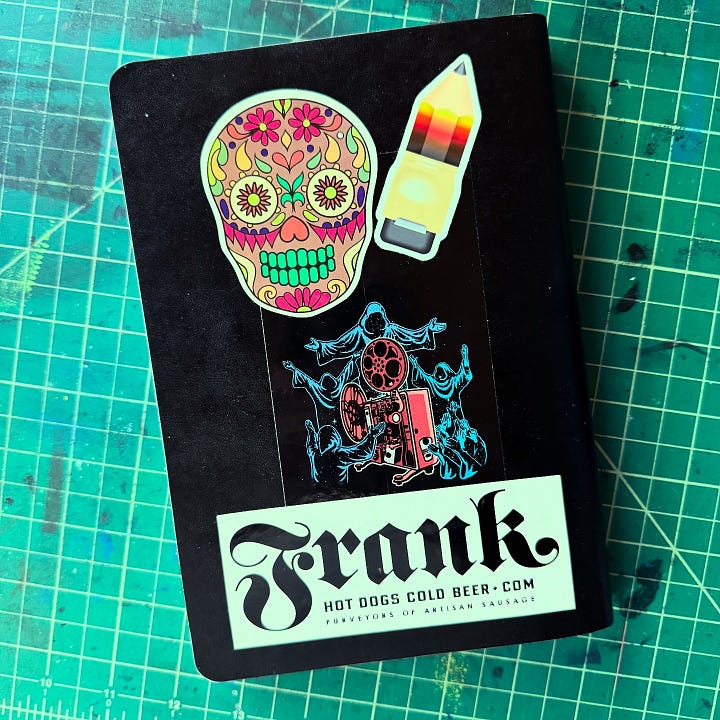 I weigh the notebook when it’s new — the way in — and then I weigh it again when it’s filled and note the weight accumulated. I started doing this as a joke on Instagram Reels and then kept doing it and then other people started doing it, too, which I find hilarious.